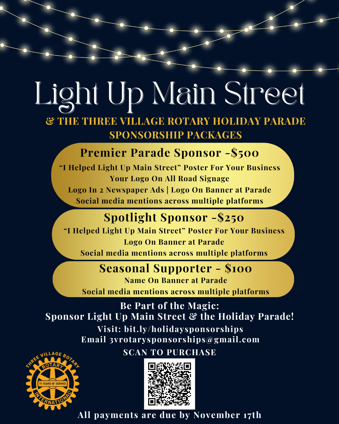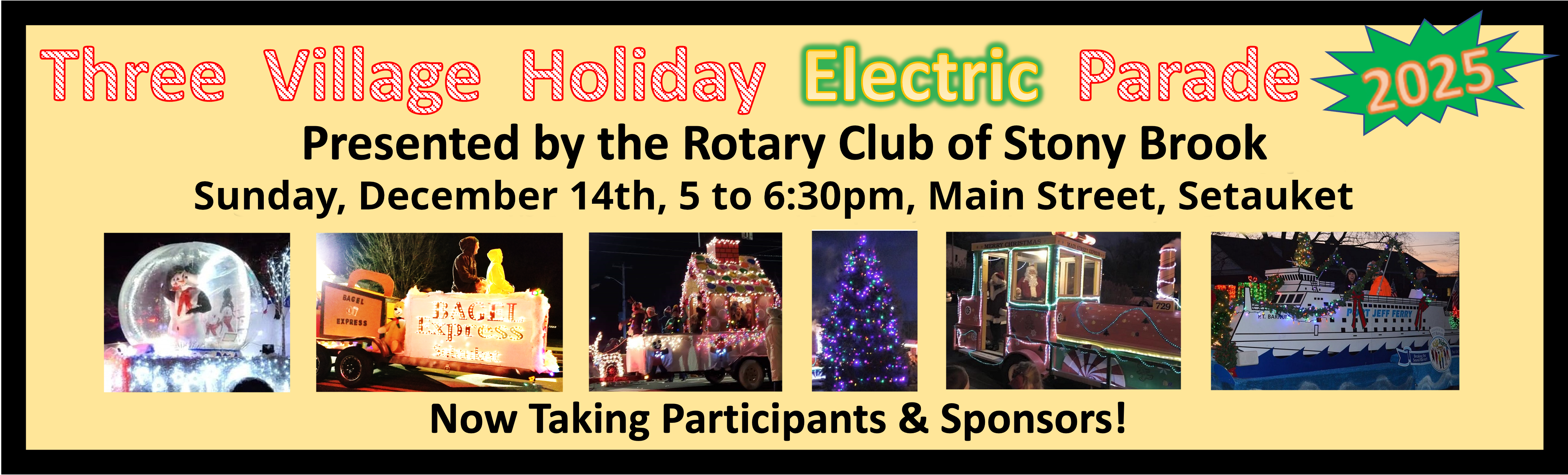 Families, schools, clubs, teams, businesses, and organizations are all welcome to make this year the best year yet! Show your enthusiasm and creativity to spread holiday cheer and lift local spirits by joining the festivities! To register your float and for more information please email threevillagerotary@gmail.com or contact Judi Wallace at (631) 338-8858.